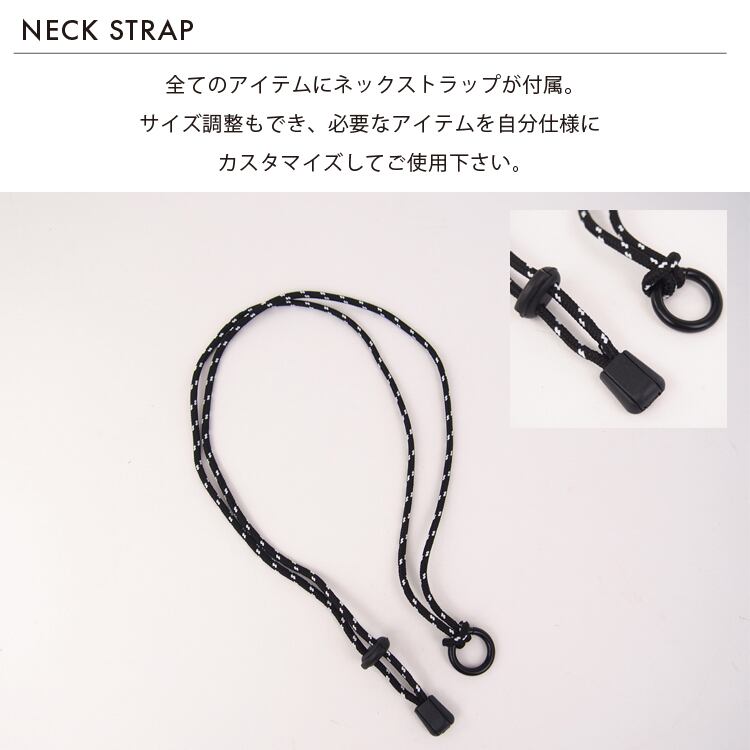 取り外しが容易なカラビナ、ネックストラップが付属しているので、鍵など必要なアイテムや、他のお財布と組み合わせて自分仕様にカスタムして身軽にお出かけすることができます。